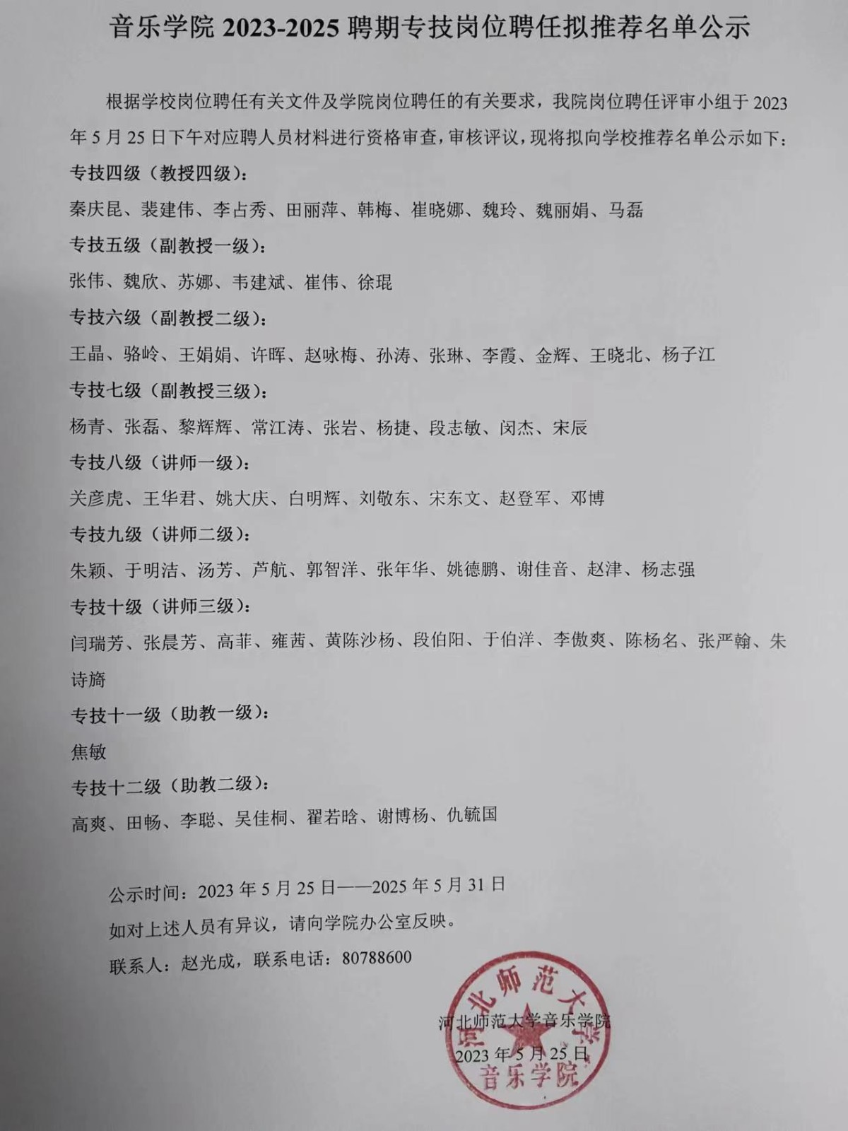 澳门正规电子游戏平台2023-2025聘期专技岗位聘任拟推荐名单公示 发布时间:2023-05-25 浏览次数:0次 上一篇:澳门正规电子游戏平台2023届硕士学位论文答辩安排 下一篇:关于公布河北师范大学第七届大学生艺术展演校内选拔赛(乙组)比赛结果的通知