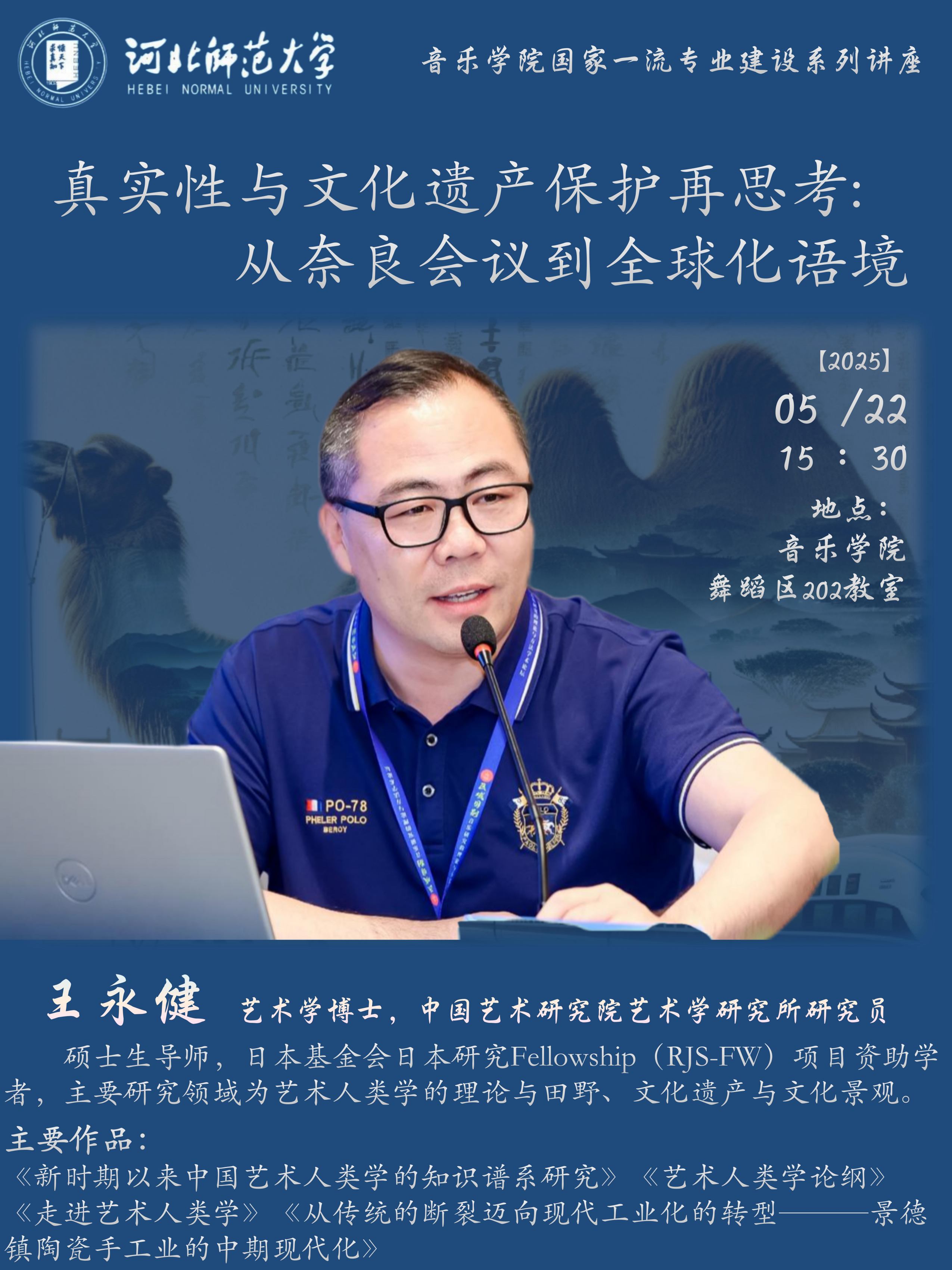 王永健,艺术学博士,中国艺术研究院艺术学研究所研究员,硕士生导师,日本关西学院大学高级访问学者(2019-2020),日本基金会日本研究Fellowship(RJS-FW)项目资助学者。主要研究领域为艺术人类学的理论与田野、文化遗产与文化景观。主持国家社科基金艺术学项目两项,参与国家社科基金重大课题、国家社科基金重点课题、文化部科技司委托课题、国家外国专家局项目、部级课题四项。国家社科基金、国家艺术基金评审委员。在国家级核心期刊和重要报刊上发表论文70余篇。主要著作有:《新时期以来中国艺术人类学的知识谱系研究》《艺术人类学论纲》《走进艺术人类学》《从传统的断裂迈向现代工业化的转型———景德镇陶瓷手工业的中期现代化》《中国艺术人类学前沿话题三人谈》(主编)《艺术介入美丽乡村建设》(合编)《艺术介入乡村建设——人类学家与艺术家对话录之二》(合编)等。