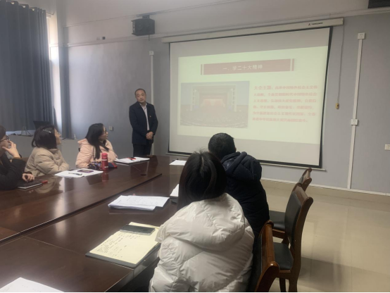 2月15日,院长汤明为全院教师作“完整准确全面学习党的二十大精神,推动beat365英国官方网站高质量跨越式发展”的宣讲报告。汤明从“学党的二十大精神”“悟党的二十大精神”“践行党的二十大精神”三个方面对党的二十大精神进行了深入讲解,并就如何践行党的二十大精神,推动学院高质量跨越式发展做了生动阐释。