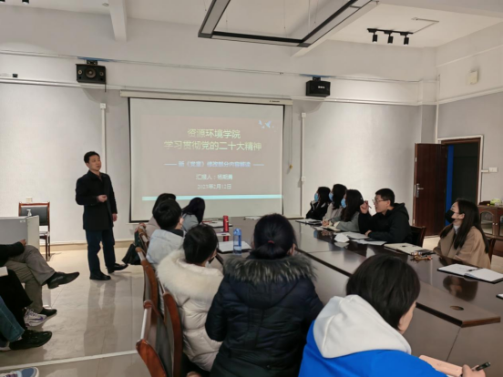 汤明强调,全院上下要以党的二十大精神为指引,紧紧抓住资源与环境专业硕士点的申报和建设,坚持使命驱动,坚持改革创新,坚持开放办学,大力推动“六大行动、三大保障”,着力构建学院全面发展、重点突破、特色明晰的发展格局。