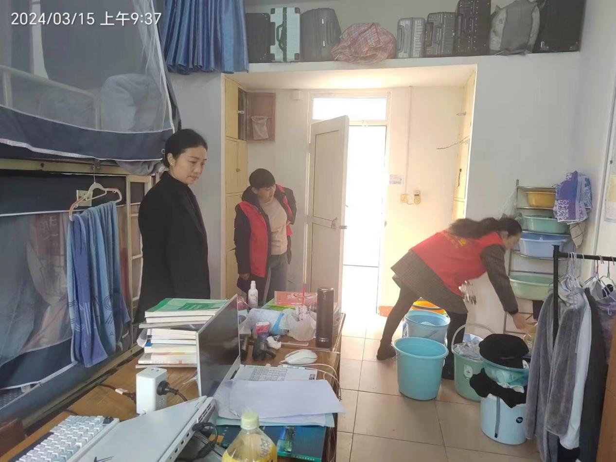 3月3日-15日,学院学生管理科科长龚双双带队宿管及学生会成员深入每位学生宿舍排查宿舍安全隐患,检查消防安全,同时与同学们强调了宿舍用电安全及防护措施,提升学生消防安全意识。与此同时,beat365学生会相关部门每天早上都会对各寝室进行例行检查,包括宿舍卫生、消防安全及用电安全检查,确保人走电断,为beat365学子校园安全保驾护航。