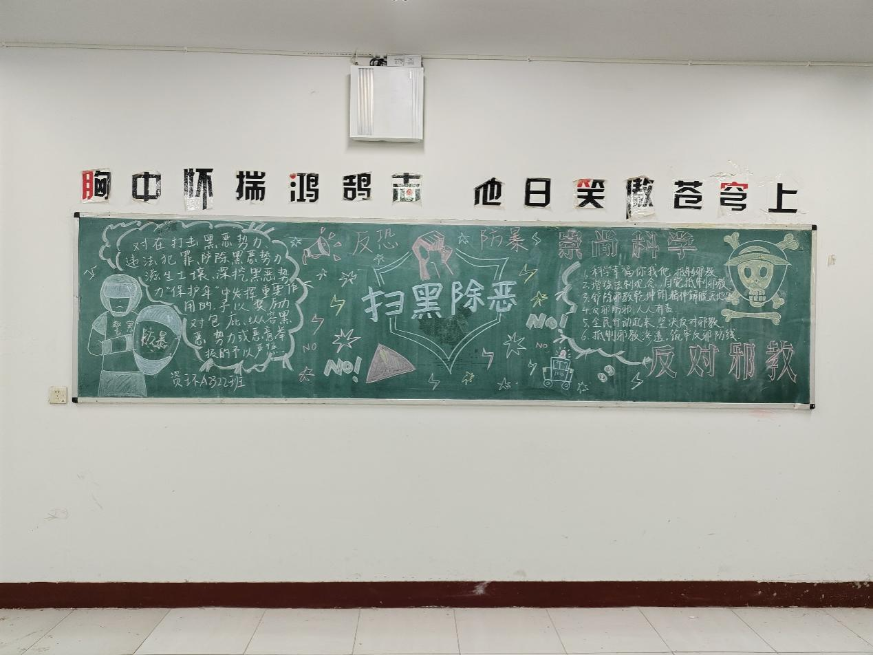 同时为了让此次活动的效果入脑入心,学院还组织学生紧扣主题通过画黑板报的方式,收集了同学们对反恐知识的了解程度和关注点,这对于提高同学们的自我保护意识非常有帮助。他们积极参与、交流想法、互相学习,共同营造了浓厚的学习氛围。