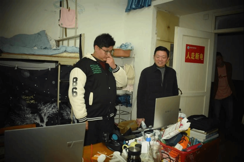在走访过程中,院领导与同学们亲切交流,询问他们在学习和生活中遇到的问题和困难,并鼓励同学们积极面对挑战,努力学习。同学们对院领导的关心表示感谢,并表示会严格遵守学校的规章制度,共同维护宿舍的良好秩序。
