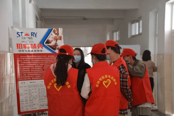 活动志愿者们听从现场老师指挥,积极配合企业工作人员,有条不紊的引导面试人员到相应的面试场地,并且维持着教学楼安静的学习环境,充分展现了当代大学生的热情与朝气,也表现出青年志愿者服务他人、乐于奉献的精神,将志愿者活动的本质融入到了活动中。