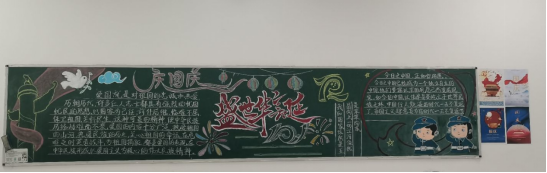 此次黑板报比赛由大一、大二两个年级共6个班级参赛,各班级积极响应号召,认真落实,充分发挥自己的想象力和团结合作的精神。参评的黑板报主题鲜明、内容充实、构思新颖、画面美观、形式活泼。作品中饱含着师生们对祖国母亲72周年华诞到来的喜悦之情。