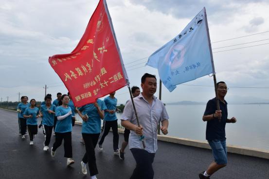 (实践队员在指导老师带领下晨跑)