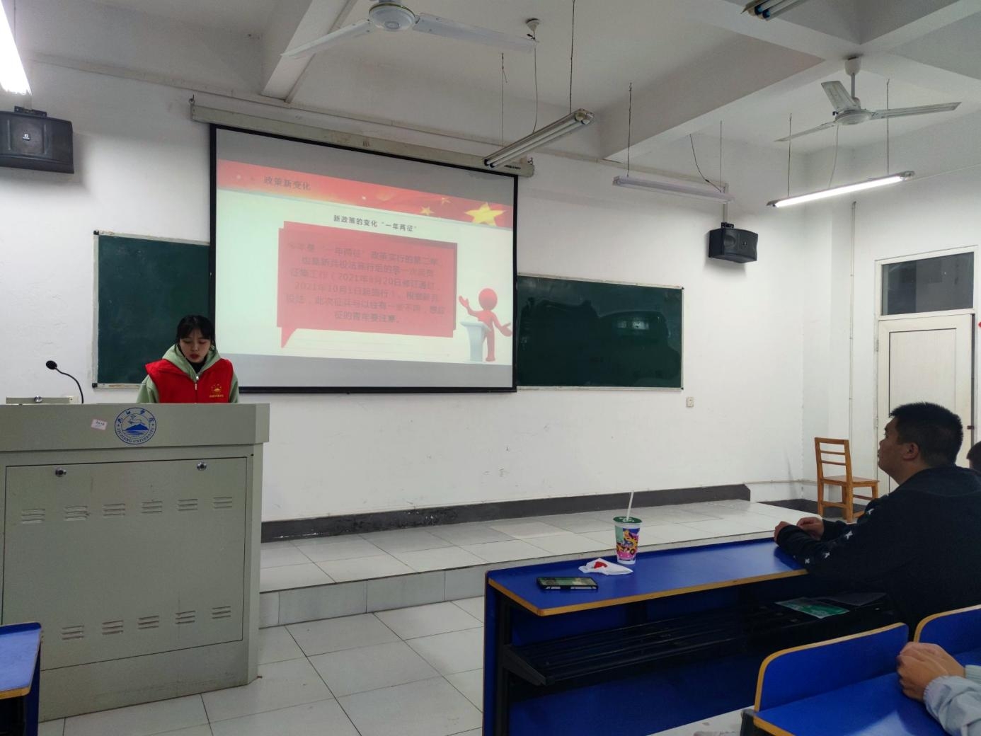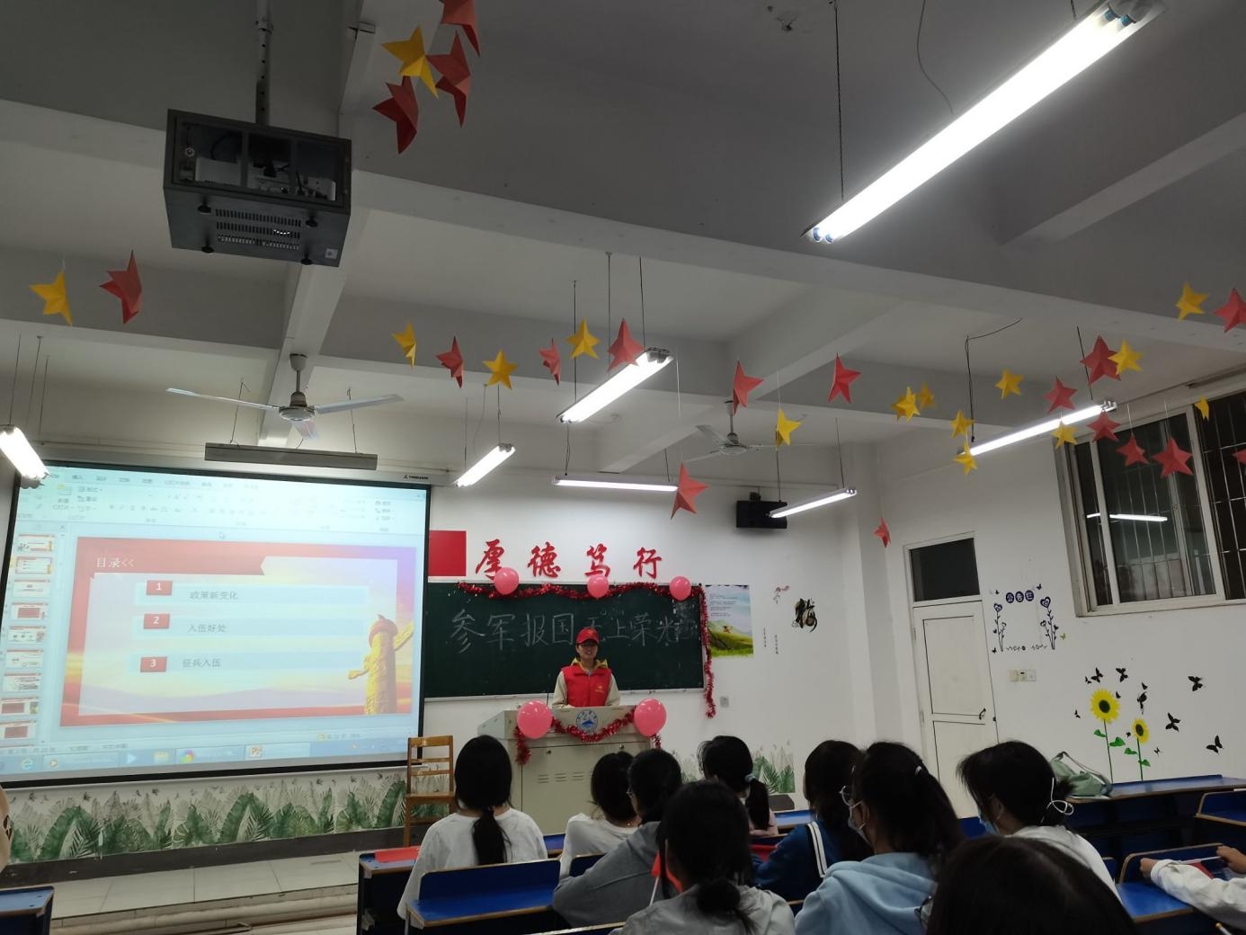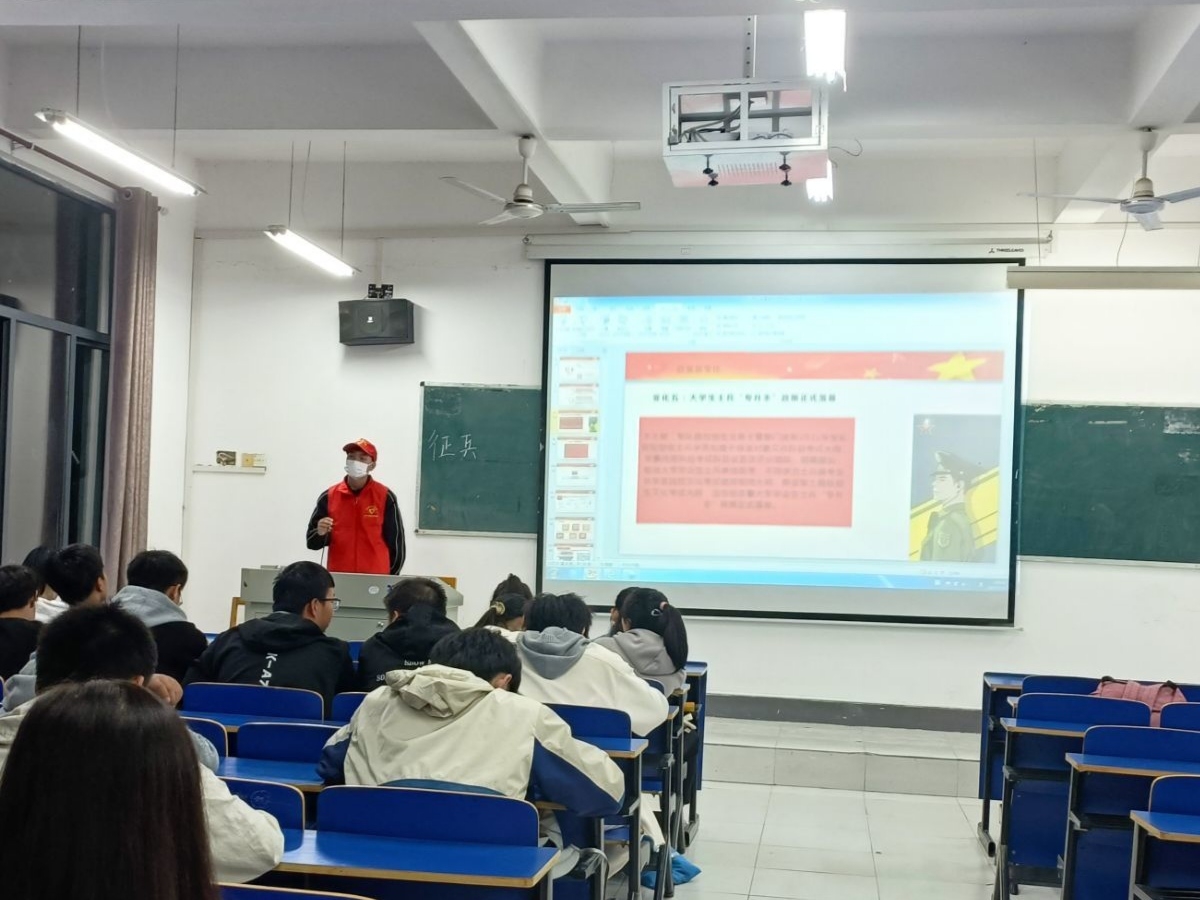 整个活动氛围愉快活跃,同学们与志愿者们友好互动,此次活动充分调动同学们报名应征入伍积极性。 鲜衣怒马,正值年少,欣逢盛世,当不负盛世,参军报国,以吾辈之青春,捍卫盛世之中华,无上光荣!