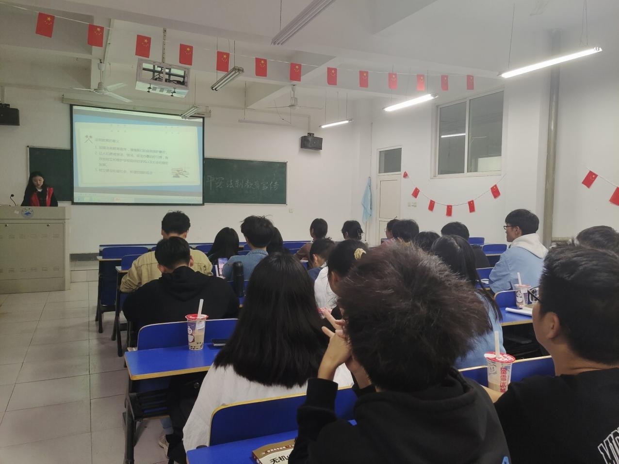 志愿者向同学们讲解“法治教育”相关知识,使同学们充分认识到日常生活中,防微杜渐,知法懂法的重要性,同时也为今后学会自我保护,提高避险,应急处理能力打下了理论基础。