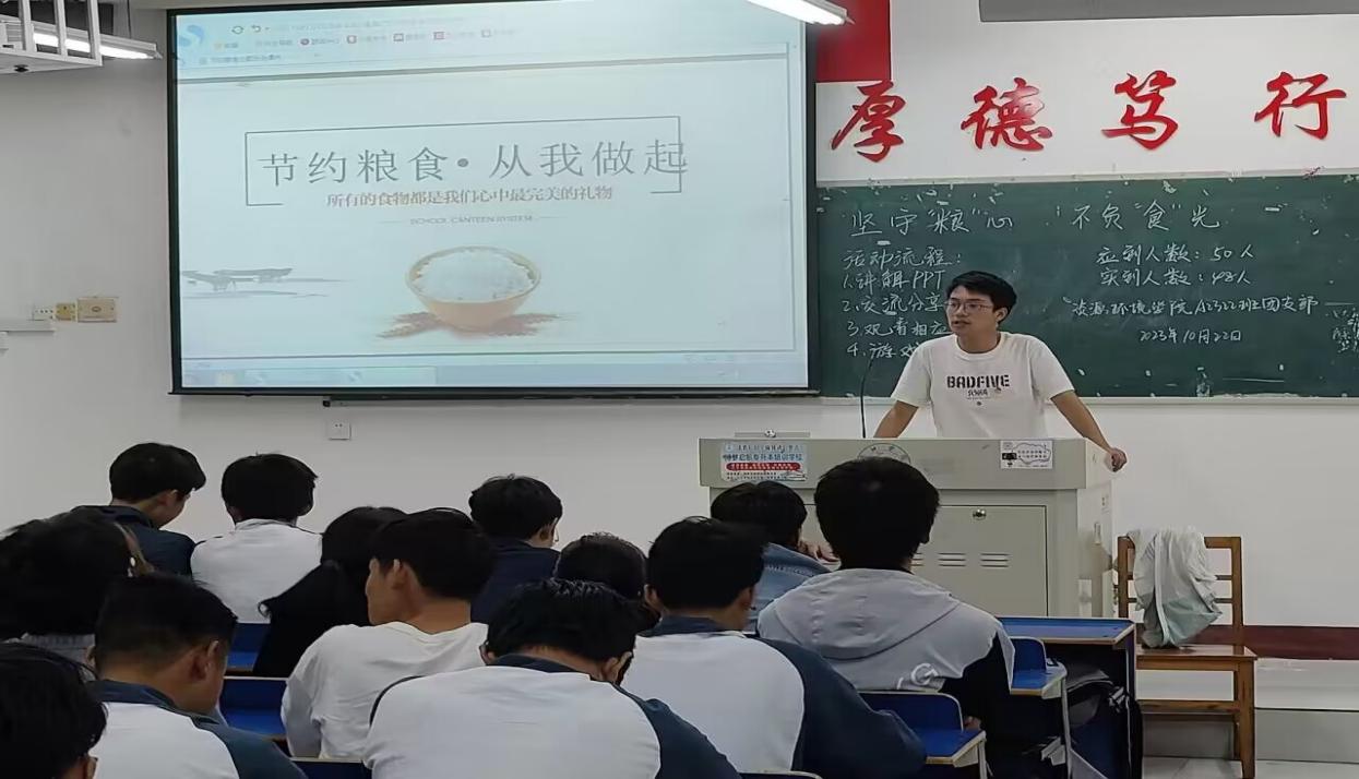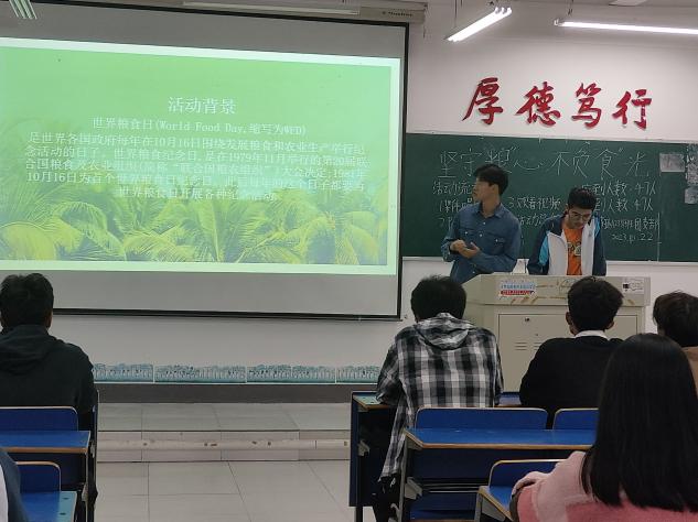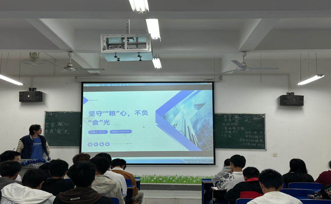 活动过程中,各团支部围绕“走进粮食日”、“粮食安全”、“可持续发展”三个层面阐述了节约粮食的重要性和必要性。同时结合了PPT和相关视频让团员与青年深刻认识到粮食的重要性,了解食物背后的付出和科学饮食的重要影响。其间,同学们踊跃地回答班级代表有关粮食知识的提问,彰显了当代青年良好的精神风貌。