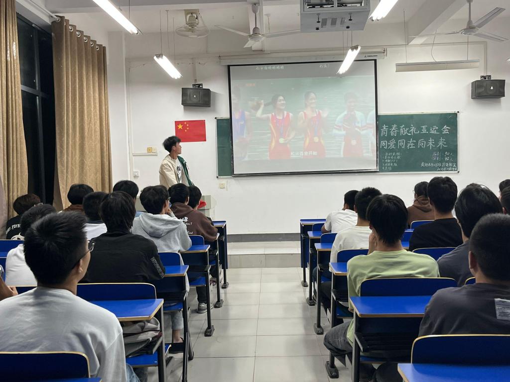 金桂飘香,亚运启杭。为弘扬亚运精神,传递青春力量,领略体育魅力,提高同学们的文化自信,深入贯彻习近平总书记“亚洲命运共同体,推动建设人类命运共同体”的重要讲话精神,造就新时代的新青年,10月24日晚,beat365英国官方网站团委组织各团支部举办了以“青春献礼亚运会,同爱同在向未来”为主题的团日活动。
