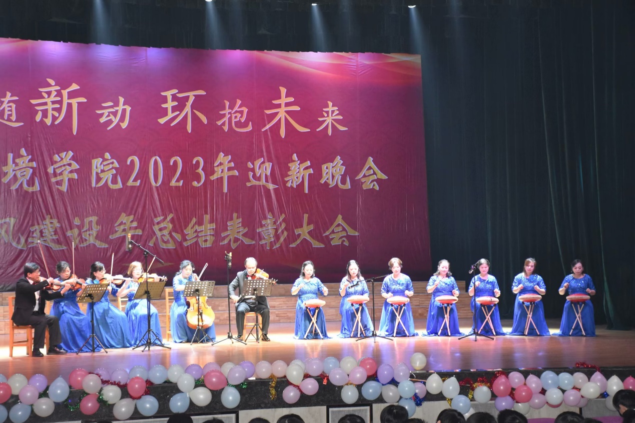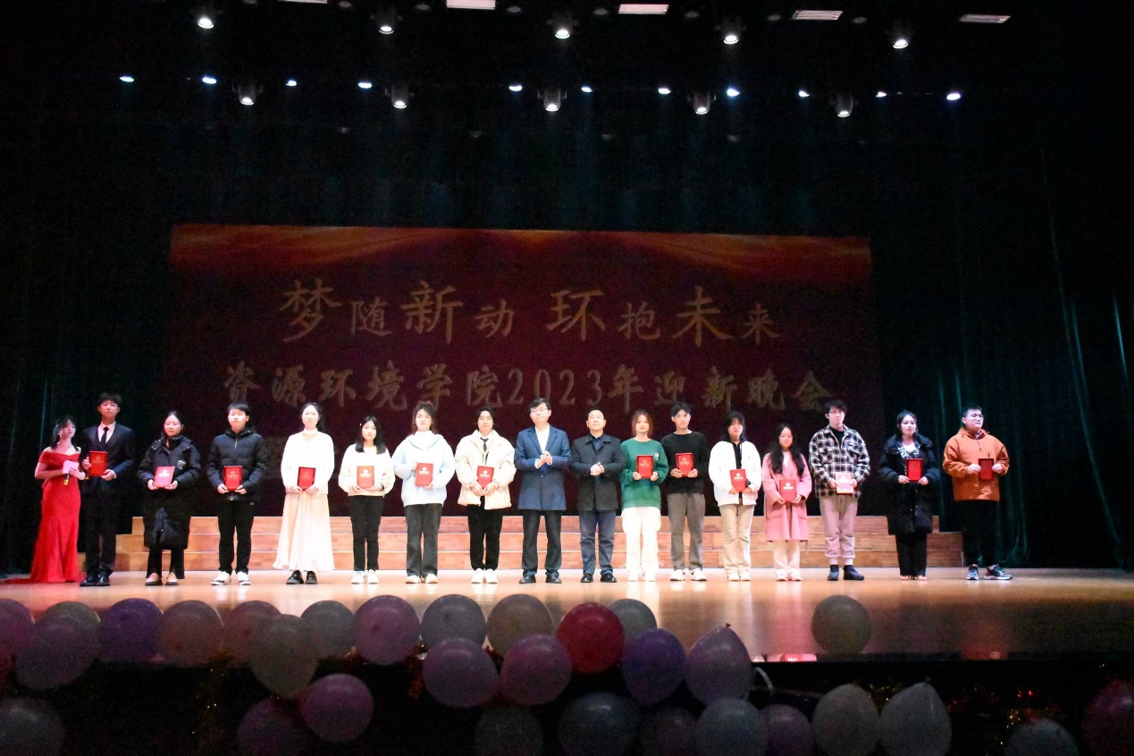 12月10日晚,beat365英国官方网站2023年迎新晚会暨院风建设年总结表彰大会在beat365英国官方网站南门大礼堂举行。晚会以“梦随新动环抱未来”为主题,给大家带来了一场缤彩纷呈的视听盛宴。beat365英国官方网站副校长严平,校党委委员,组织部部长兼党政办公室主任杨杰,学生处处长吴铃,关心下一代工作委员会教师代表,beat365英国官方网站院长汤明,党委书记杨期勇,党委副书记张杨帆,资环学院全体教职工老师及学生与们齐聚一堂,共赏晚会。