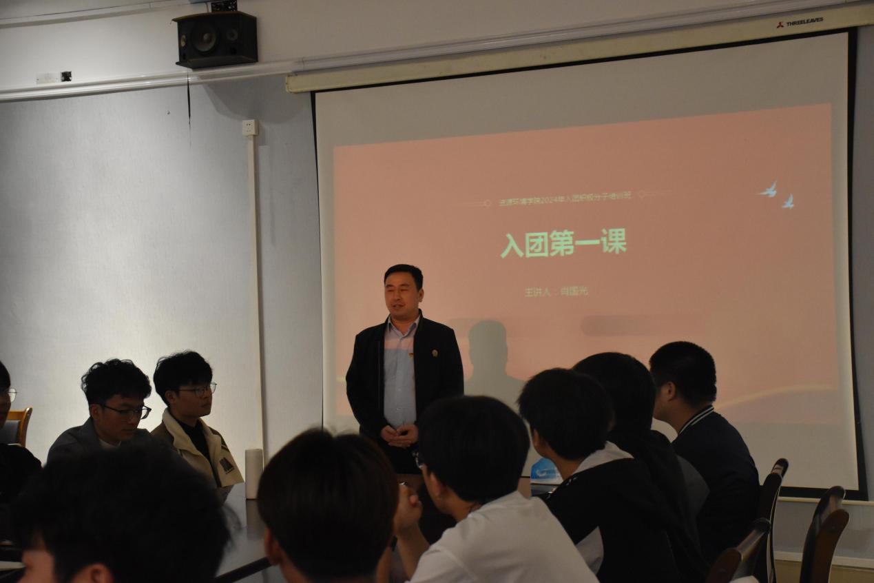 仪式结束后,学院团委书记肖国光给各入团积极分子上了入团第一课。第一课从共青团介绍与历史背景,团员基本权利与义务概述,入团条件及程序说明等方面开展,并且表明了入团积极分子应该意识到理论与实践相结合的重要性,不仅要在理论上掌握团的知识,更要将其运用到实际行动中,通过自己的行为去践行团的宗旨和理念,并且坚定理想信念,树立正确的世界观、人生观和价值观,努力成为有理想、有道德、有文化、有纪律的新时代青年。各位入团积极分子在本次活动中认真听讲,积极学习各项团的知识,最后在大家的学习讨论中结束了本次活动。