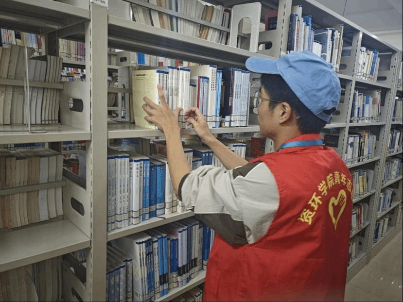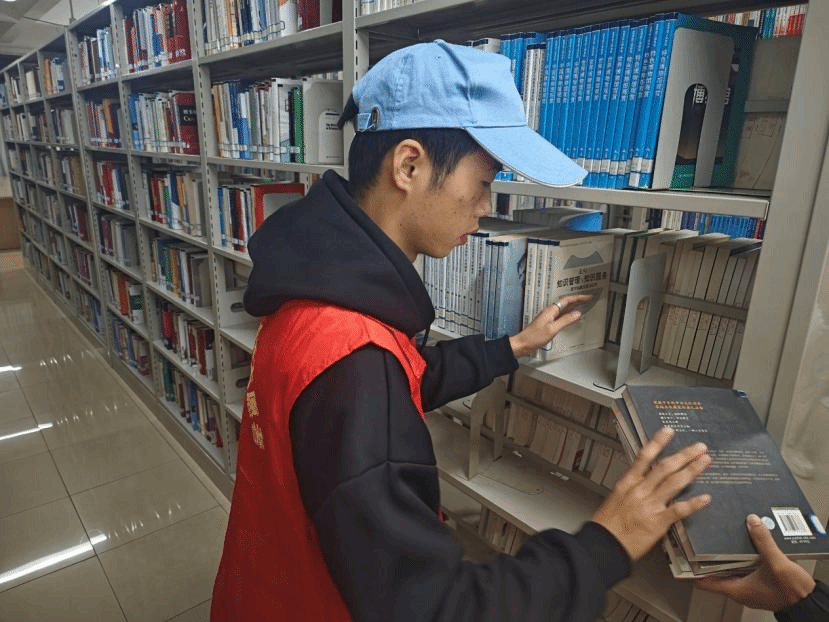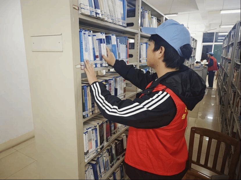 在本次图书馆志愿活动中,志愿者们分工明确,有的用小推车将书籍搬运到指定位置;有的仔细地将归还的书籍按编号分类依次摆放到书架上,一本本书籍通过志愿者们的付出回到了它们的‘家’;还有的志愿者他们排成一排,一个接一个传递书籍到指定位置。通过志愿者们的辛苦工作,图书馆更加整洁有序,图书馆工作人员也可以更高效地进行管理。