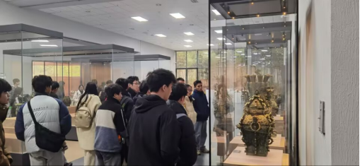 其次参观了铜岭铜矿遗址博物馆,作为长江国家文化公园九江段重点项目之一,馆内展示了大量的文物藏品,馆内丰富多样的展品,包括古老的采矿工具、精美的青铜器以及详细的历史图文资料,生动地展示了铜岭铜矿从开采、冶炼到青铜器制作的全过程,并为同学们讲解了古人利用植物找矿的过程,让学生们对古代铜矿开采技术的精湛和古人的智慧赞叹不已,进一步加深了对专业知识的理解和记忆。