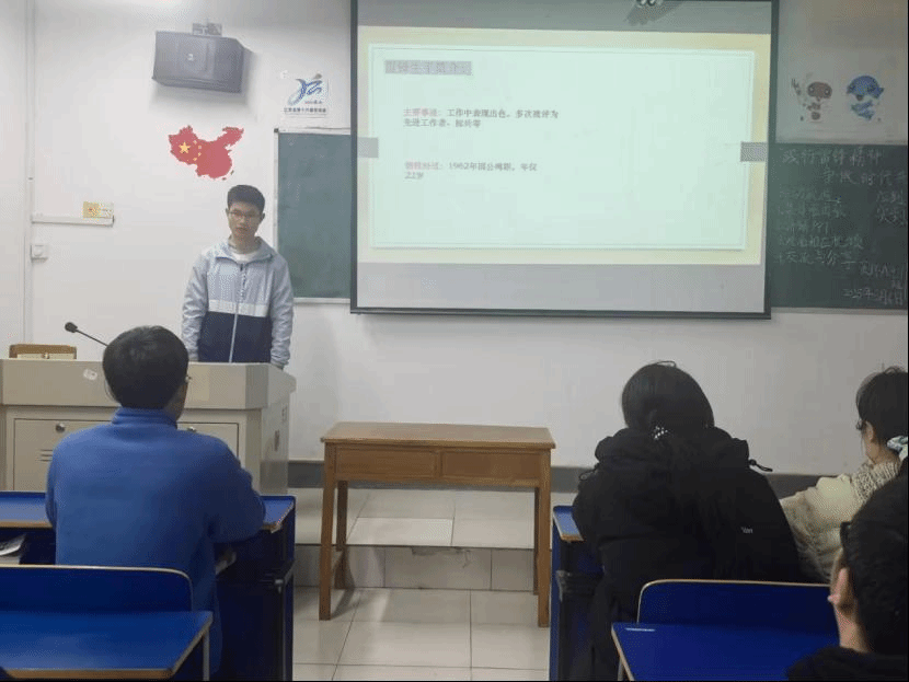 在齐唱团歌结束过后,团日活动准时开始。各班团支书和组织委员组织各班开展“践行雷锋精神,争做时代先锋”团日活动,主讲人围绕雷锋同志的事迹和雷锋精神的内涵,让同学们深入学习雷锋精神,激励他们以雷锋为榜样,争做新时代的奋进者,让雷锋精神在新时代绽放璀璨光芒。