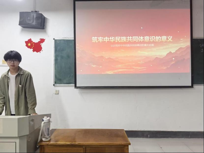 为引导青年学生们深刻理解和自觉践行铸牢中华民族共同体意识,维护国家统一和民族团结,实现中华民族伟大复兴以及鼓励大家将中华民族共同体意识内化于心、外化于行,为构建和谐校园、促进民族团结贡献自己的力量。2025年4月1日晚上七点,资环学院大一各班成员在各班团支书的带领下以饱满的热情在各班固定教室开展了“铸牢中华民族共同体意识”主题团日活动。