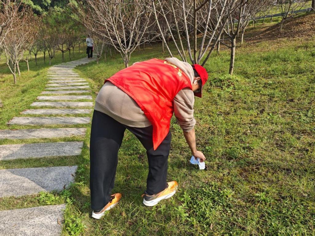 活动当日,志愿者们身着统一志愿红马甲,头戴红帽,在南山公园集结后,迅速投入到环保活动中。他们收纳垃圾袋,沿着公园步道细致清理烟头、纸屑、塑料瓶等各类垃圾,以实际行动维护公园生态环境。过程中,志愿者们还主动向游客宣传环保知识,讲解世界环境日的意义,倡导大家从日常小事践行环保理念。
