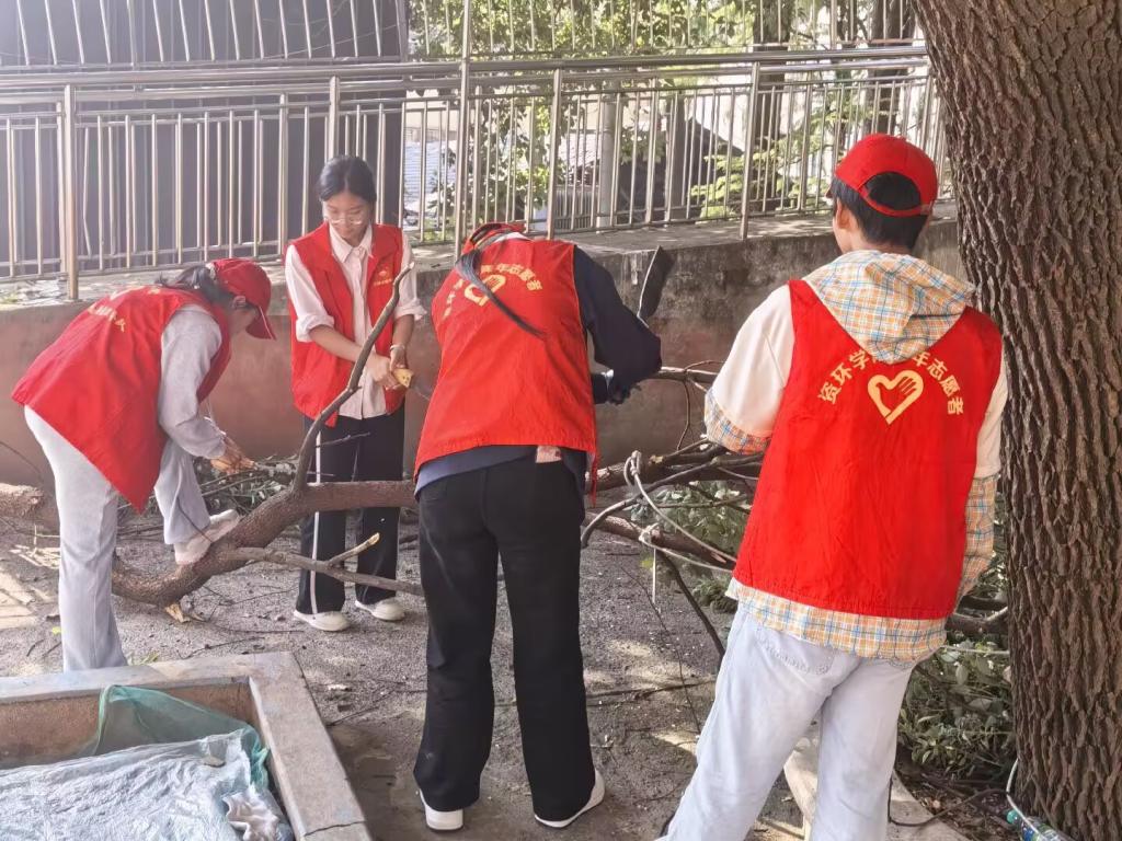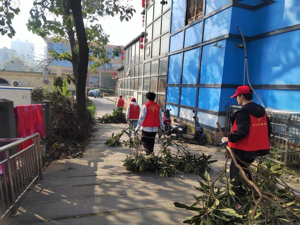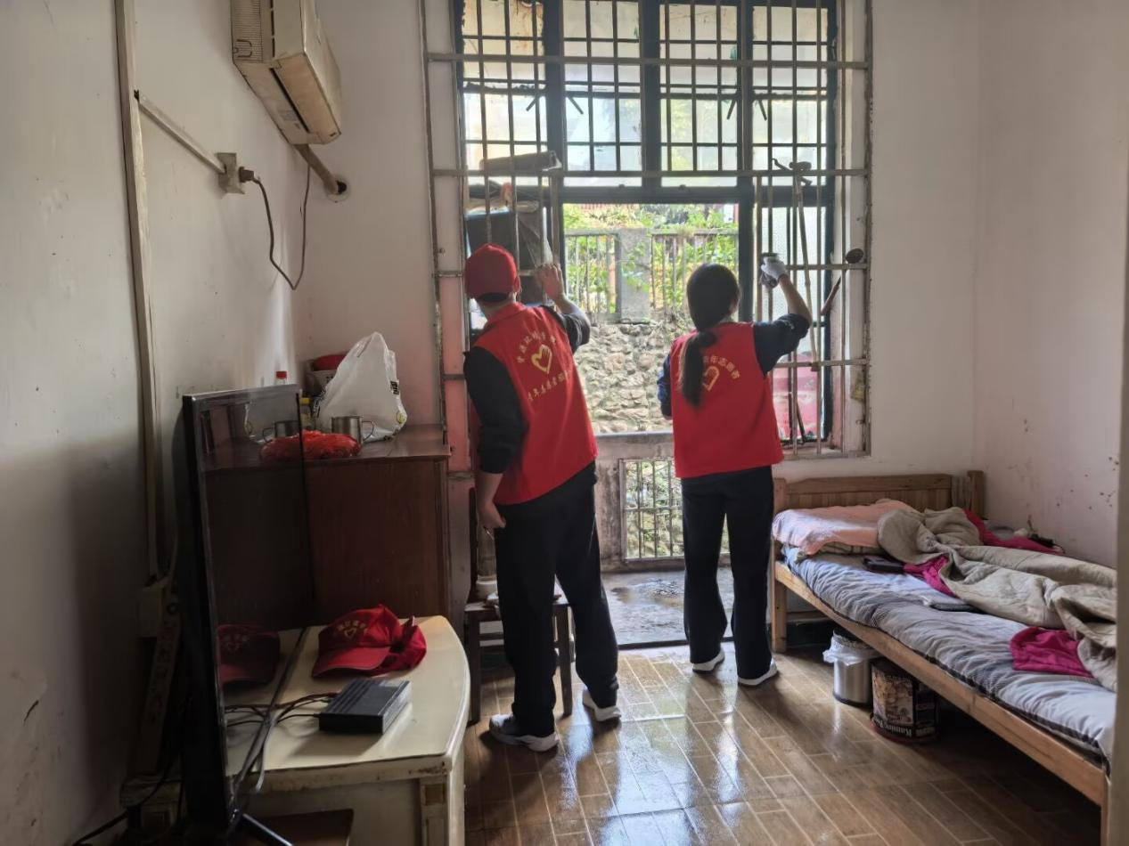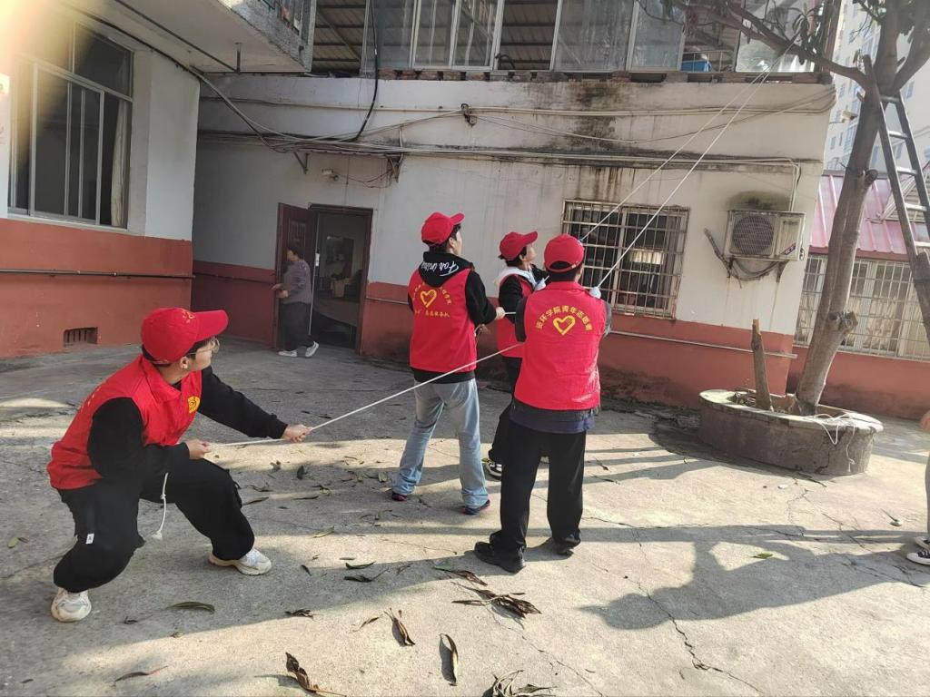 活动现场,志愿者分工协作:这边,志愿者清扫院落枯枝落叶,阳光里忙碌的身影格外鲜活;那头,他们合力搬运修剪的树枝,交谈声裹着枝叶轻响;还有的在擦拭老人房间门窗,指尖暖意把玻璃擦得透亮,连角落灰尘也一并拂去。偶遇老人倚门旁观,志愿者便递上温水,温馨在小院轻轻漾开。