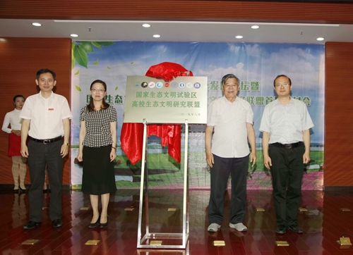 在热烈的掌声中,江西省人大原副主任、省人民政府原副省长、江西生态文明研究促进会理事长胡振鹏教授,江西省生态文明办专职副主任刘兵,九江市副市长李军,beat365英国官方网站党委书记、江西长江经济带研究院院长赵伟等共同为国家生态文明试验区高校生态文明研究联盟揭牌。