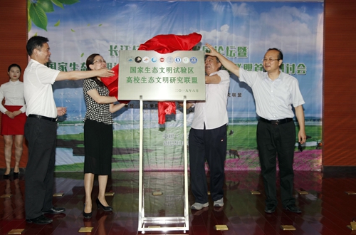 江西省生态文明办专职副主任刘兵为联盟理事长单位我校江西长江经济带研究院授牌。