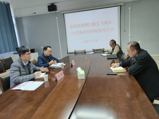 11月9日下午,湖口县副县长王飞、湖口县科技局局长周小匀一行来beat365英国官方网站考察交流,并在厚德楼709会议室开展校政融合对接交流会。学院院长汤明、相关职能部门负责人及博士团队教师代表参加了对接会。会议由汤明主持。