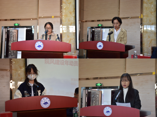 教师代表尹宁宁、行政教师代表王婷、环境工程专业学生代表葛丹萍、长江生态文明试验班徐佳琪在动员会发言。