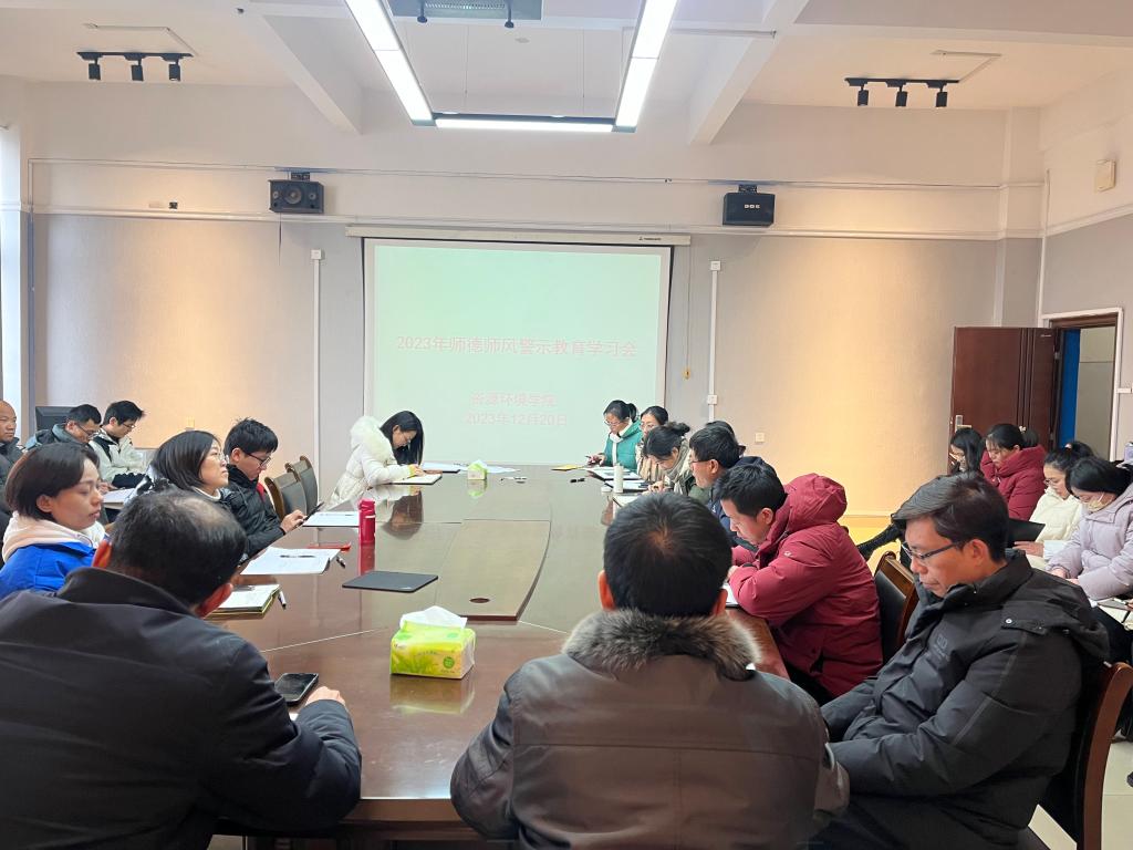 为进一步规范学院教职工从教行为,帮助广大教师牢固树立底线意识,增强遵守教师职业行为十项准则的自觉性,切实加强和改进师德师风建设,12月20日beat365英国官方网站于厚德楼709会议室开展了2023年师德师风警示教育学习会,会议由beat365英国官方网站党委书记杨期勇主持,学院全体教职工参加了本次会议。