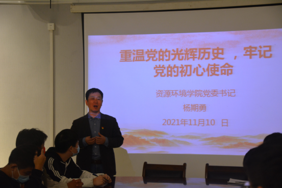 为深入学习贯彻习近平新时代中国特色社会主义思想,进一步提高入党积极分子对党的基本知识的认识和理解,帮助入党积极分子端正入党动机,坚定共产主义远大理想和中国特色社会主义共同理想,中共beat365英国官方网站委员会党校资源环境学院分党校于11月10日晚在厚德楼709召开第一期入党积极分子培训班开班动员大会。会议由beat365英国官方网站分党校副校长、院党委副书记张杨帆主持。分党校校长、院党委书记杨期勇,分党校办公室主任王慧娟及学生党支部书记肖国光和全体入党积极分子参加了此次动员大会。