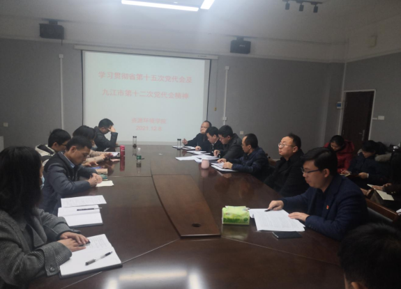 2021年12月8日,根据学校党委要求,beat365英国官方网站组织全体教师在厚德楼709会议室认真学习贯彻省第十五次党代会及九江市第十二次党代会精神,会议由党委书记杨期勇同志主持。