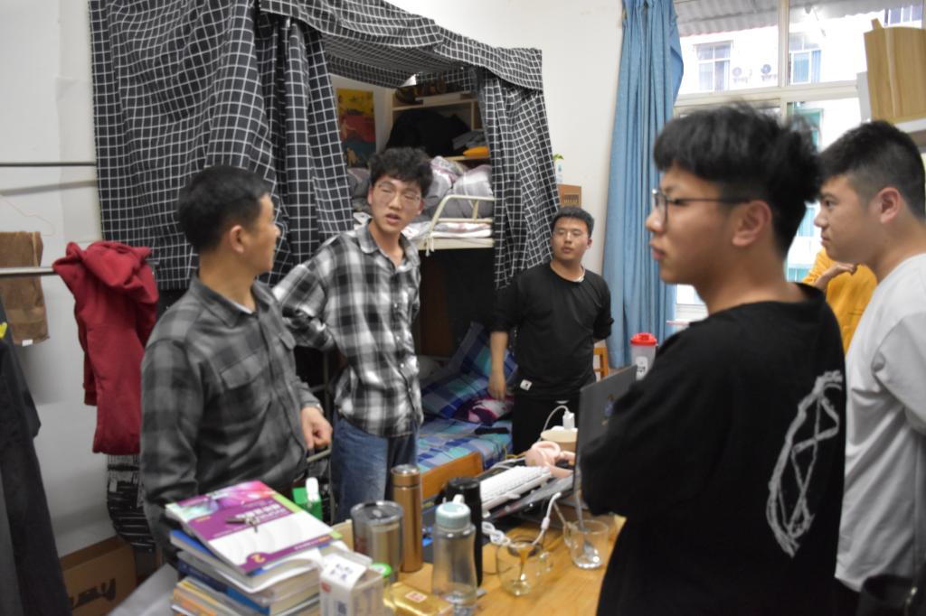 3月13日下午,beat365英国官方网站党委书记杨期勇、学生思政教育科及班主任老师深入学生宿舍23栋开展疫情防控督查及宿舍安全检查。