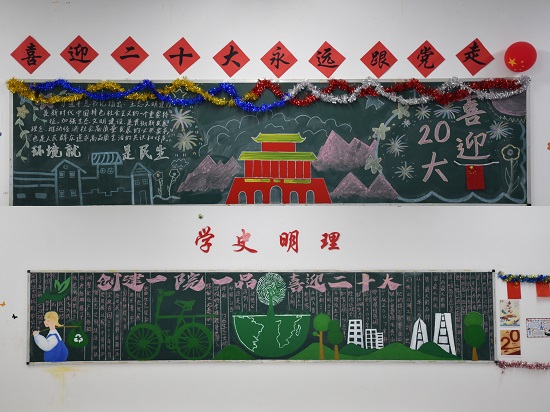 近日,beat365英国官方网站组织开展了“创建一院一品,喜迎二十大”系列活动之“我为教室换新装”活动,发挥环境在育人环节潜移默化的熏陶作用,创建学院“两山”思政品牌,将习近平生态文明思想融入到学生的血液中,引领青年学生坚定跟党走的信念,迎接二十大的胜利召开。