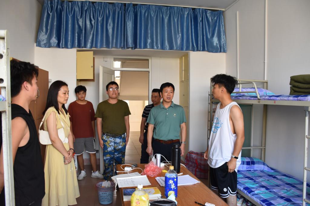 为深入贯彻落实学校工作部署,加强学生宿舍安全管理工作,切实保障学生的生命安全、财产安全,2022年9月29日,beat365英国官方网站党委书记杨期勇、学生思政教育科科长肖国光,学生管理科科长龚双双一行前往学生宿舍进行宿舍安全隐患大排查。