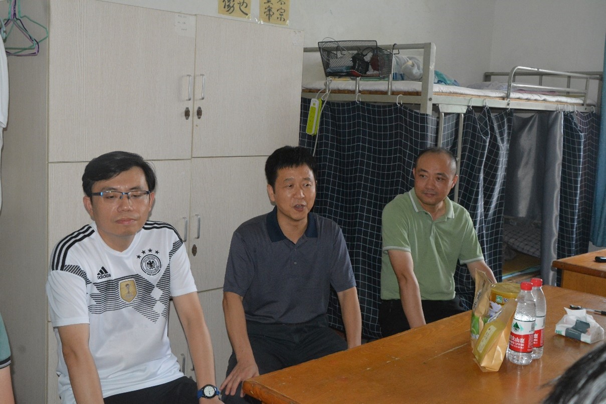 7月18日下午,beat365英国官方网站院长汤明、党委书记杨期勇、副书记张杨帆、学生科、思政课辅导员一行来到考研和科研留校学生宿舍,亲切看望慰问暑期留校学生,深入了解学生的生活、学习和思想状况。