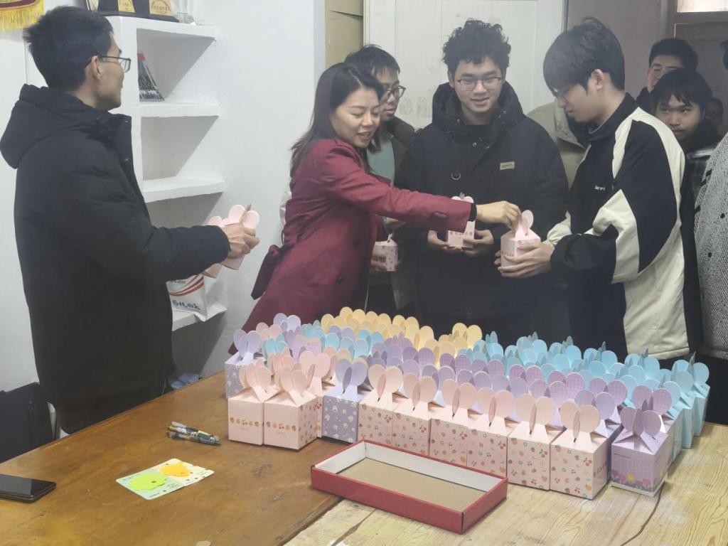 活动室内暖意融融,气氛温馨。同学们有序排队,依次从老师们手中接过精心准备的“考研暖心礼包”。每一份礼物都承载着学院对学子们辛勤付出的肯定与殷切期盼。翟佩佩副书记、杨涛副院长与同学们亲切交流,细致询问大家的备考状态与意向报考院校,耐心倾听同学们的想法与心声。