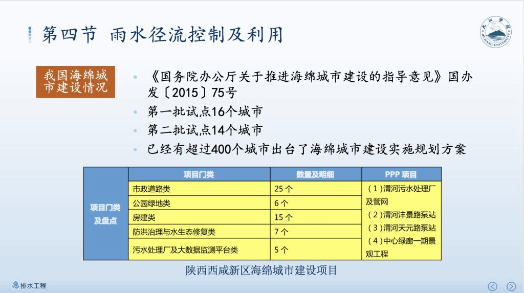 教师:政府在海绵城市建设方面的举措。
